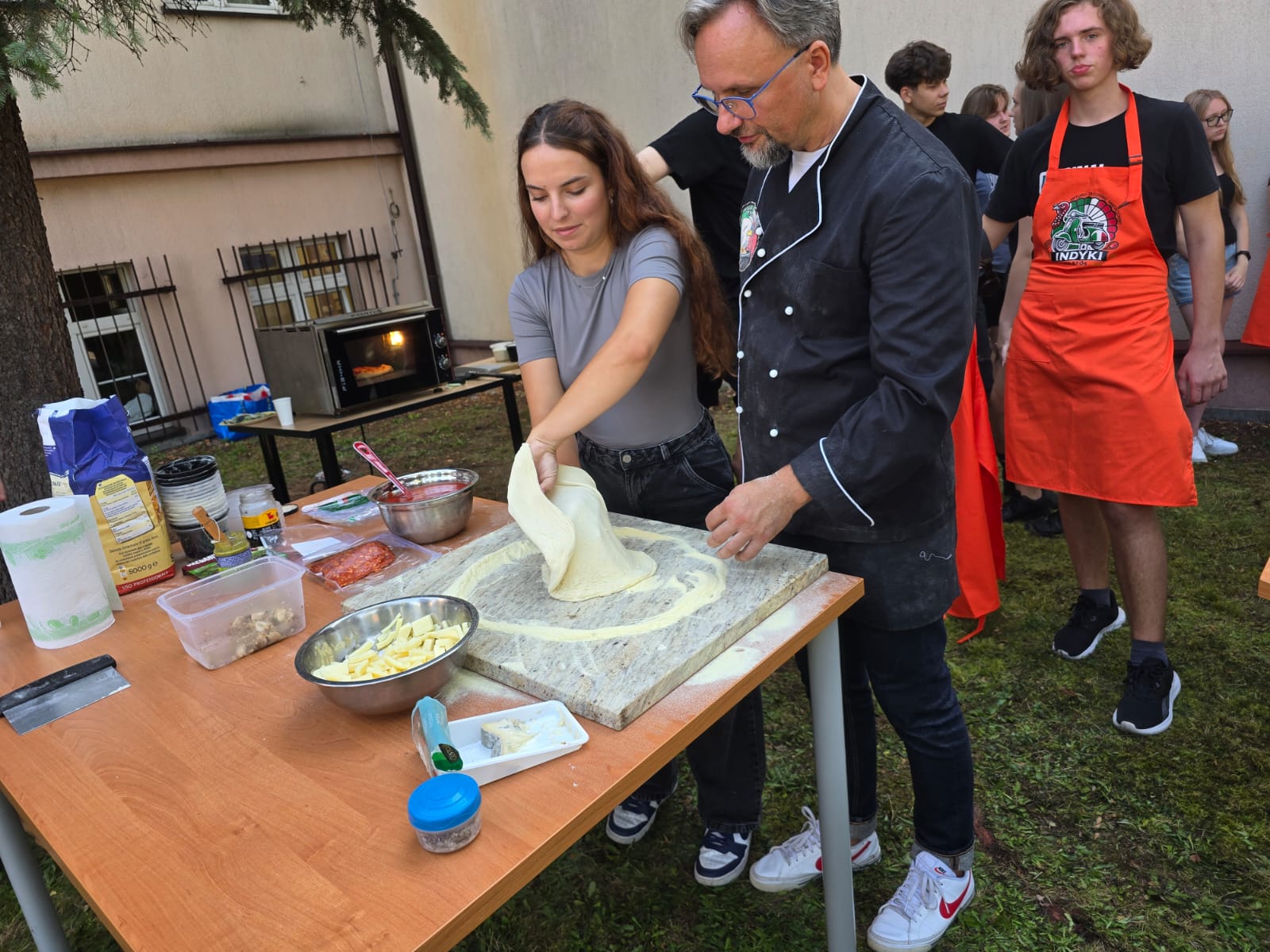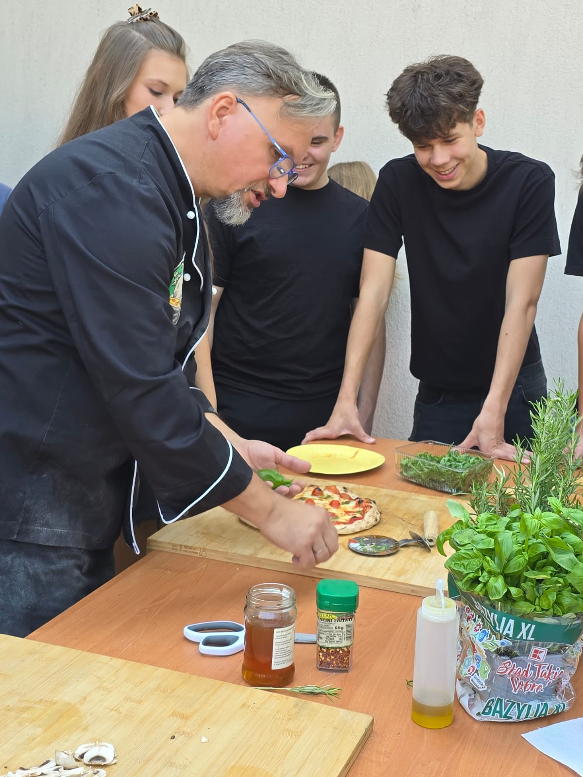 Na zakończenie, pod okiem naszego absolwenta Pana Artura Indyki – projektanta wnętrz i miłośnika dobrej kuchni – uczniowie mogli własnoręcznie przygotować różnego rodzaju pizze, których nie powstydziłby się sam Włoch.