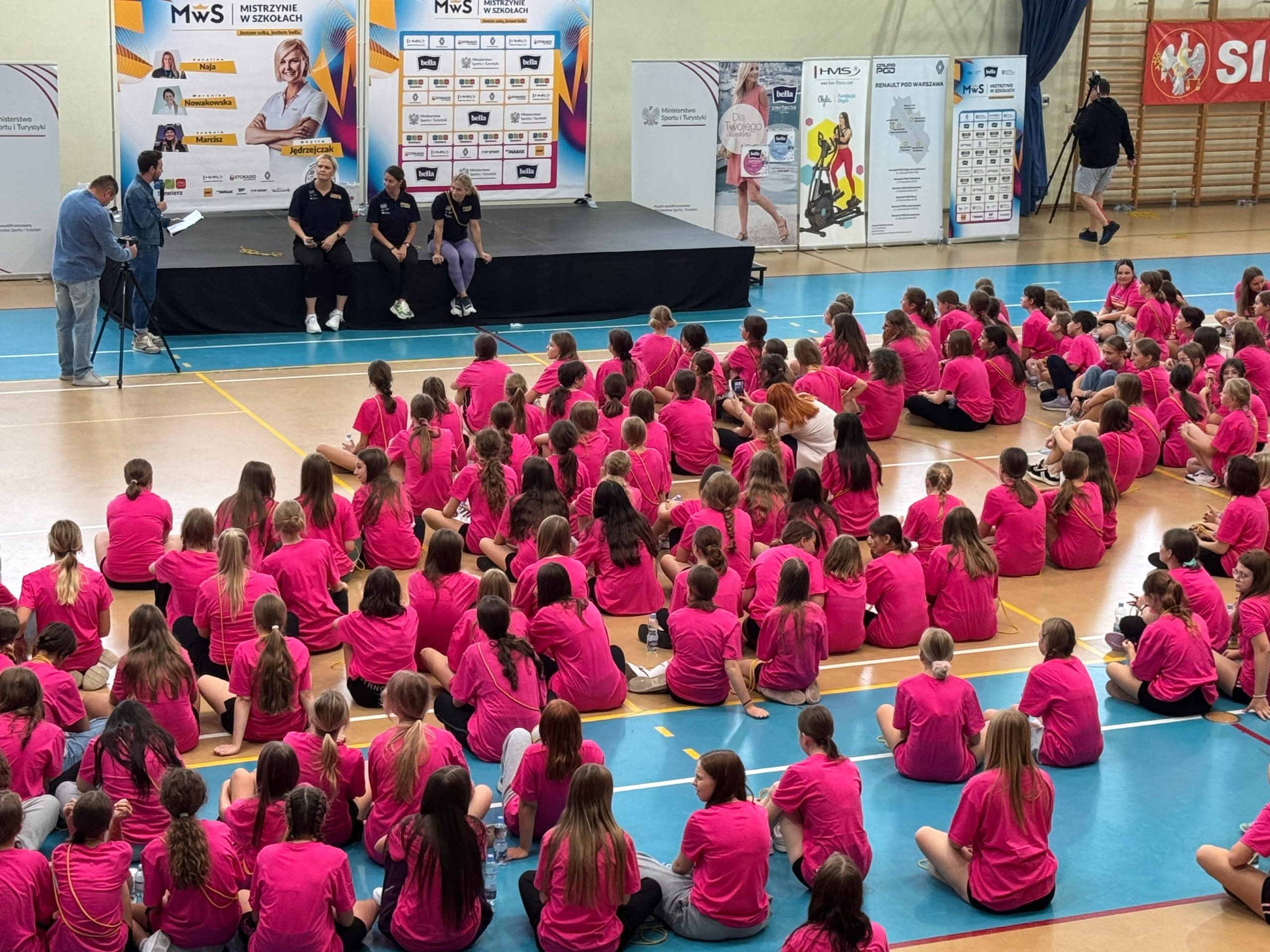 23 września nasze uczennice wzięły udział w niezwykłym wydarzeniu „Mistrzynie w Szkołach 2025” w Siewierzu. Dzień rozpoczął się od energicznej lekcji WF z gumą przy muzyce, która dostarczyła mnóstwo radości i sportowych emocji. Następnie dziewczęta uczestniczyły w inspirującej rozmowie motywacyjnej z Mistrzyniami – Karoliną Nają, Weroniką Nowakowską i Otylią Jędrzejczak. Sportsmenki opowiadały o swojej drodze do sukcesu, znaczeniu właściwego żywienia, regeneracji i wytrwałości w dążeniu do celu. Spotkanie zakończyło się rozdawaniem autografów i wspólnymi zdjęciami, które będą piękną pamiątką. To wyjątkowe wydarzenie na długo pozostanie w pamięci uczestniczek i z pewnością będzie motywacją do podejmowania nowych sportowych wyzwań.