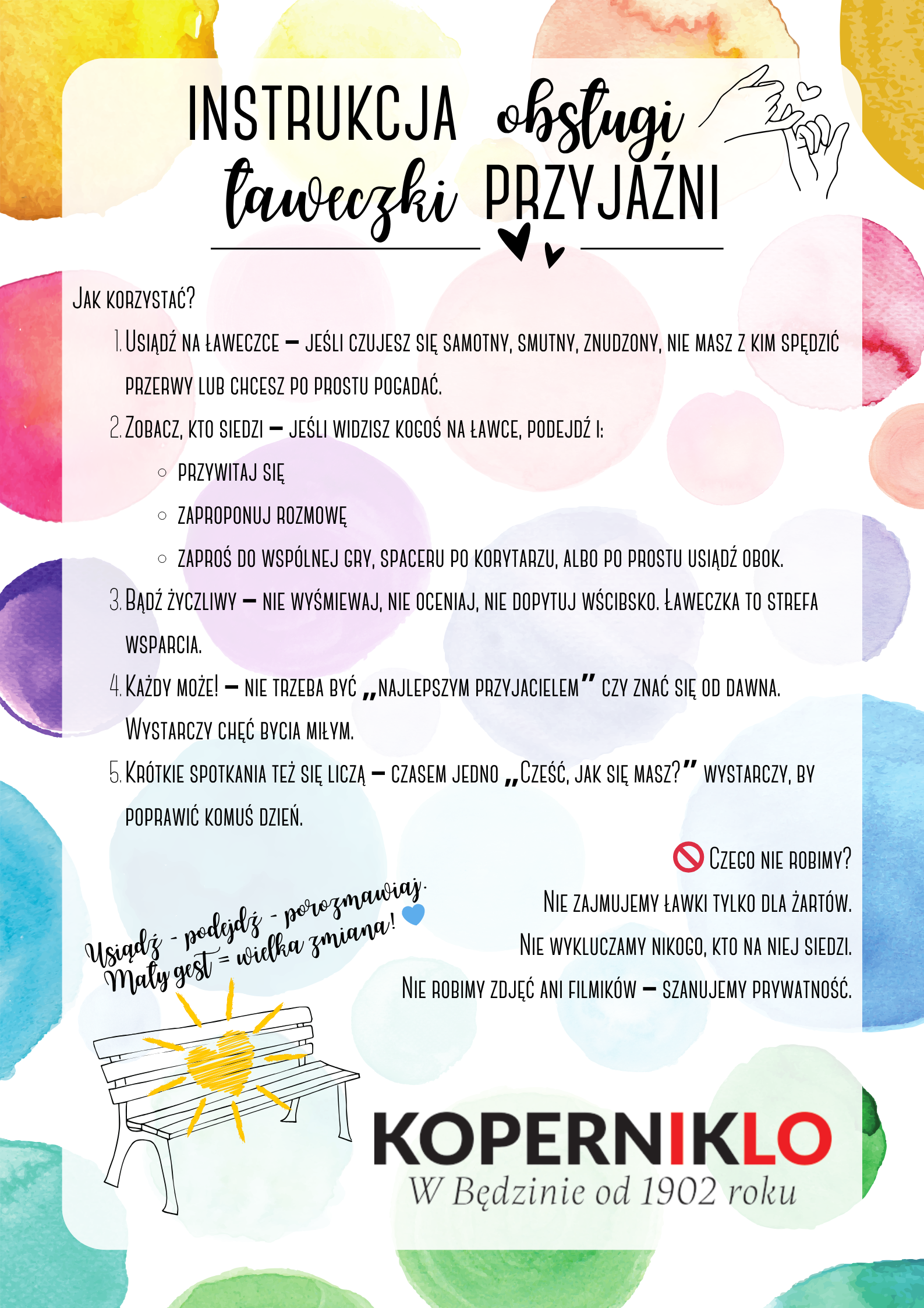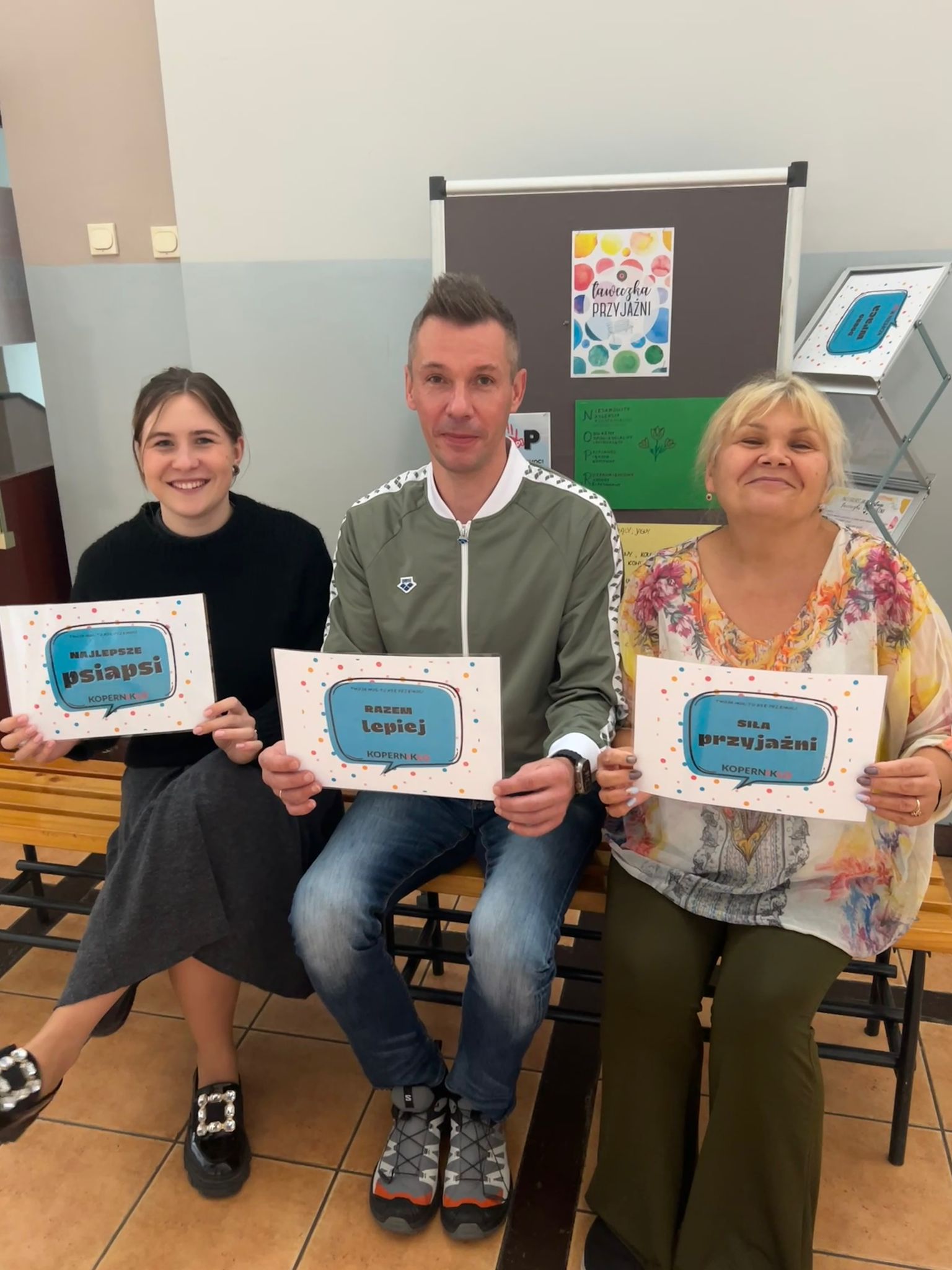 Szczególnym powodzeniem cieszyła się ławeczka przyjaźni, która zamieniła się w prawdziwą fotobudkę. Każdy mógł zrobić sobie pamiątkowe zdjęcie z kimś bliskim, trzymając zabawne i inspirujące karteczki, takie jak: