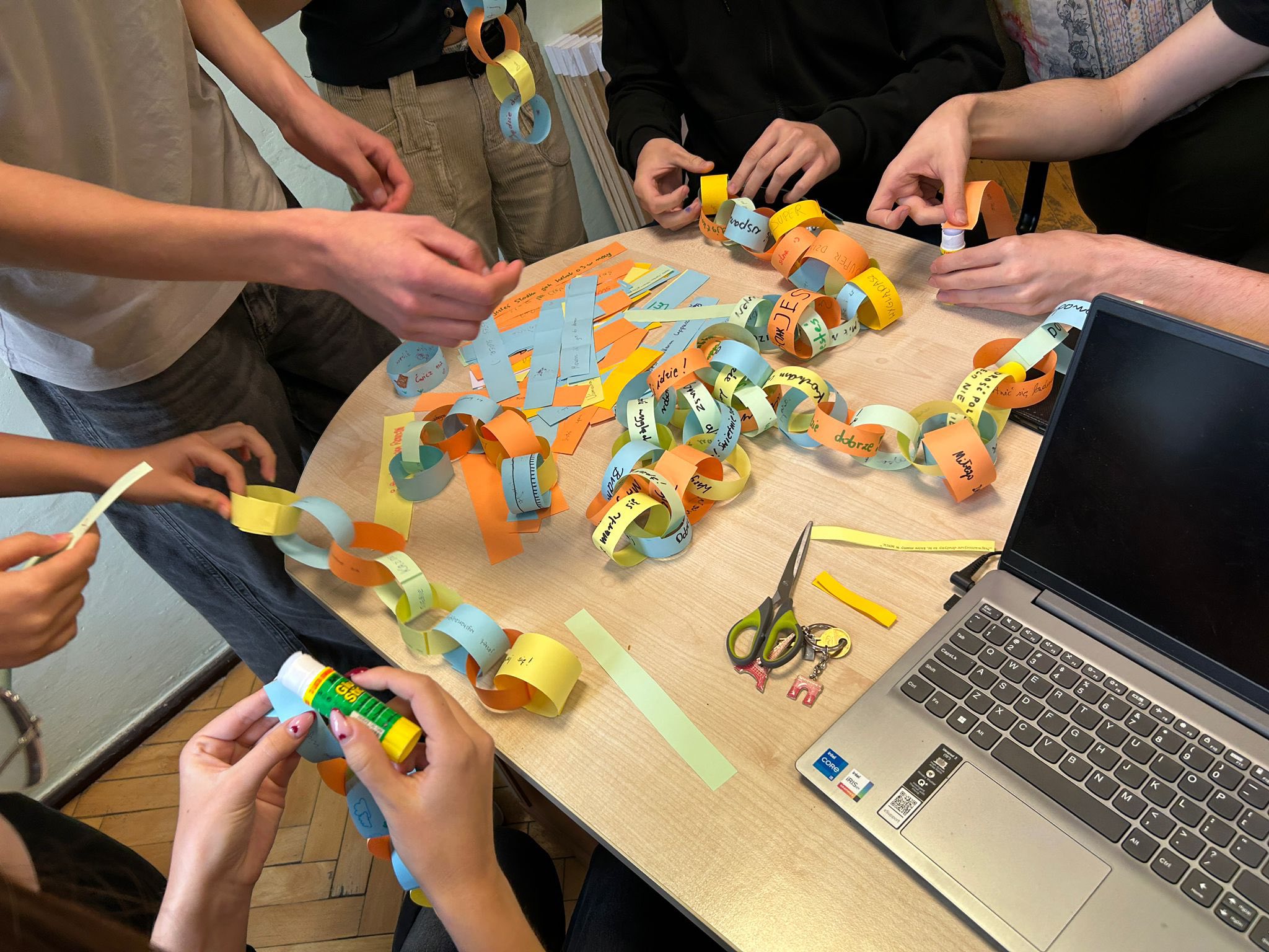 🔹 Punktem kulminacyjnym dnia było wspólne stworzenie „łańcucha dobra”, z którego ułożyliśmy wielkie – symbol szacunku, życzliwości i wsparcia, jakie okazujemy sobie nawzajem w naszej szkolnej społeczności.
