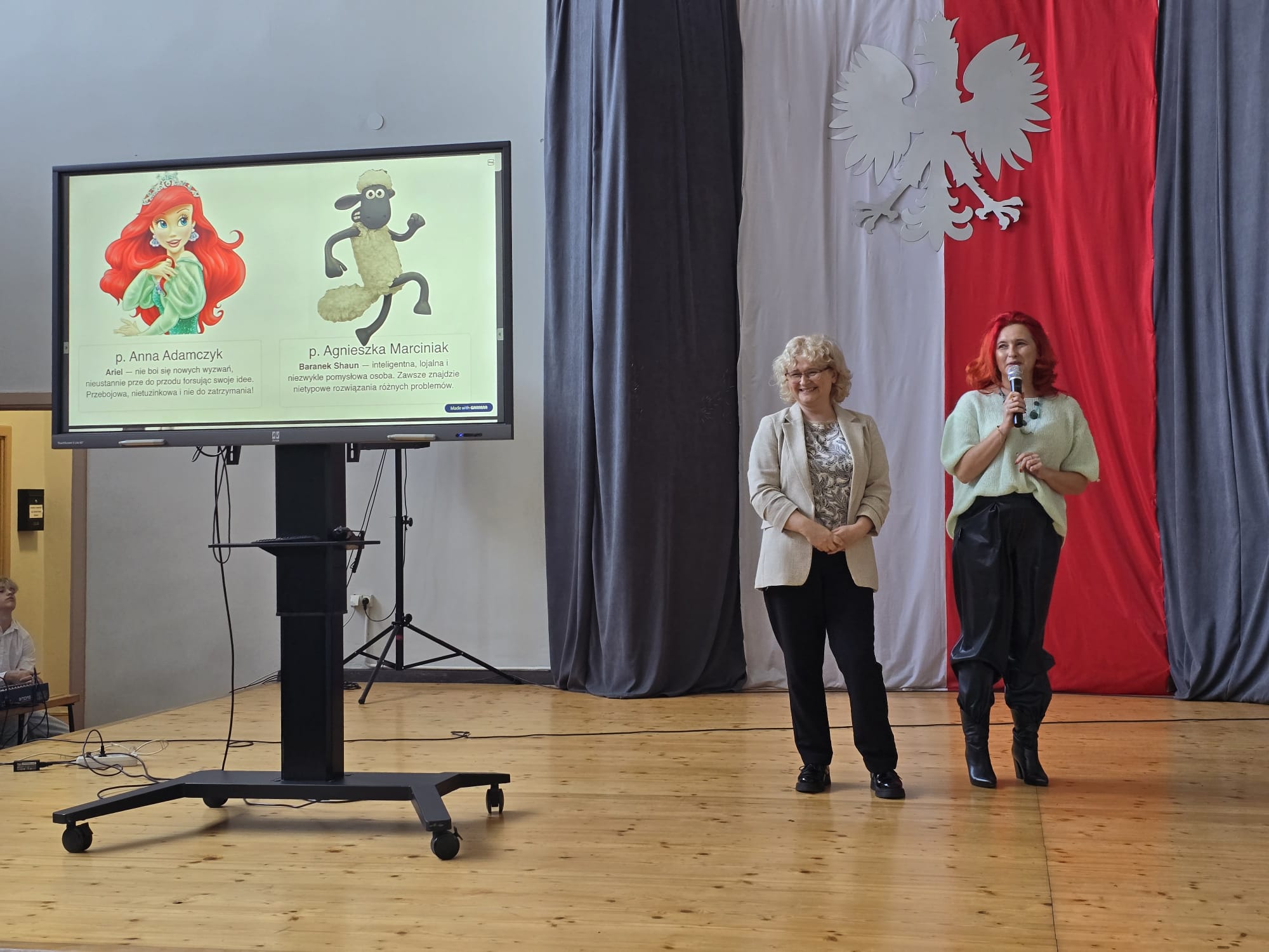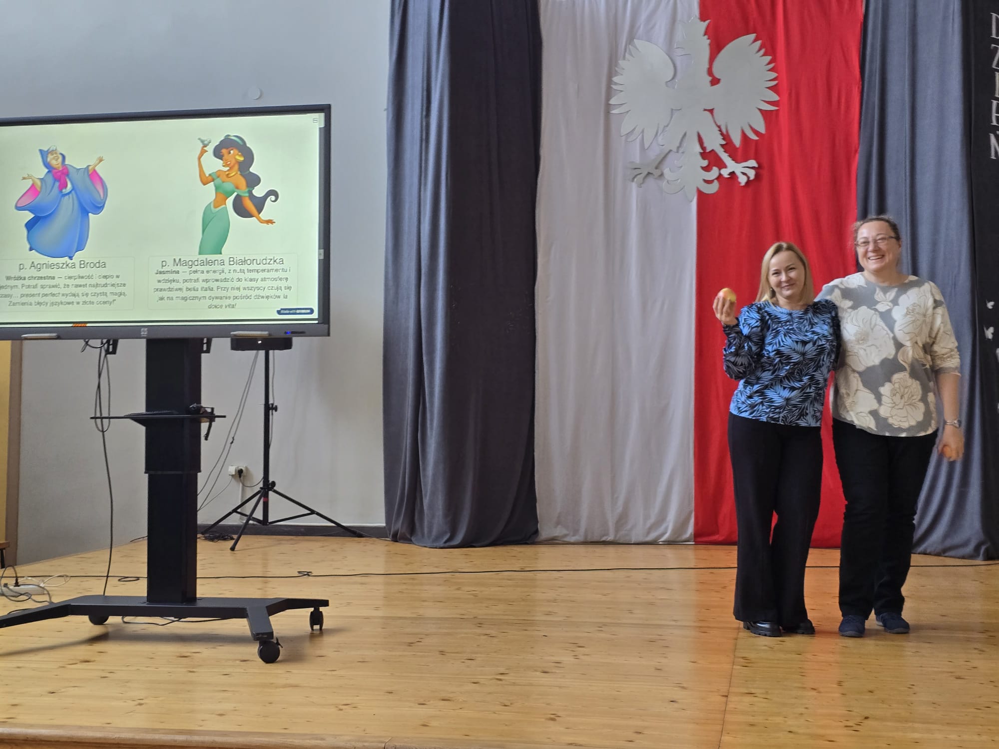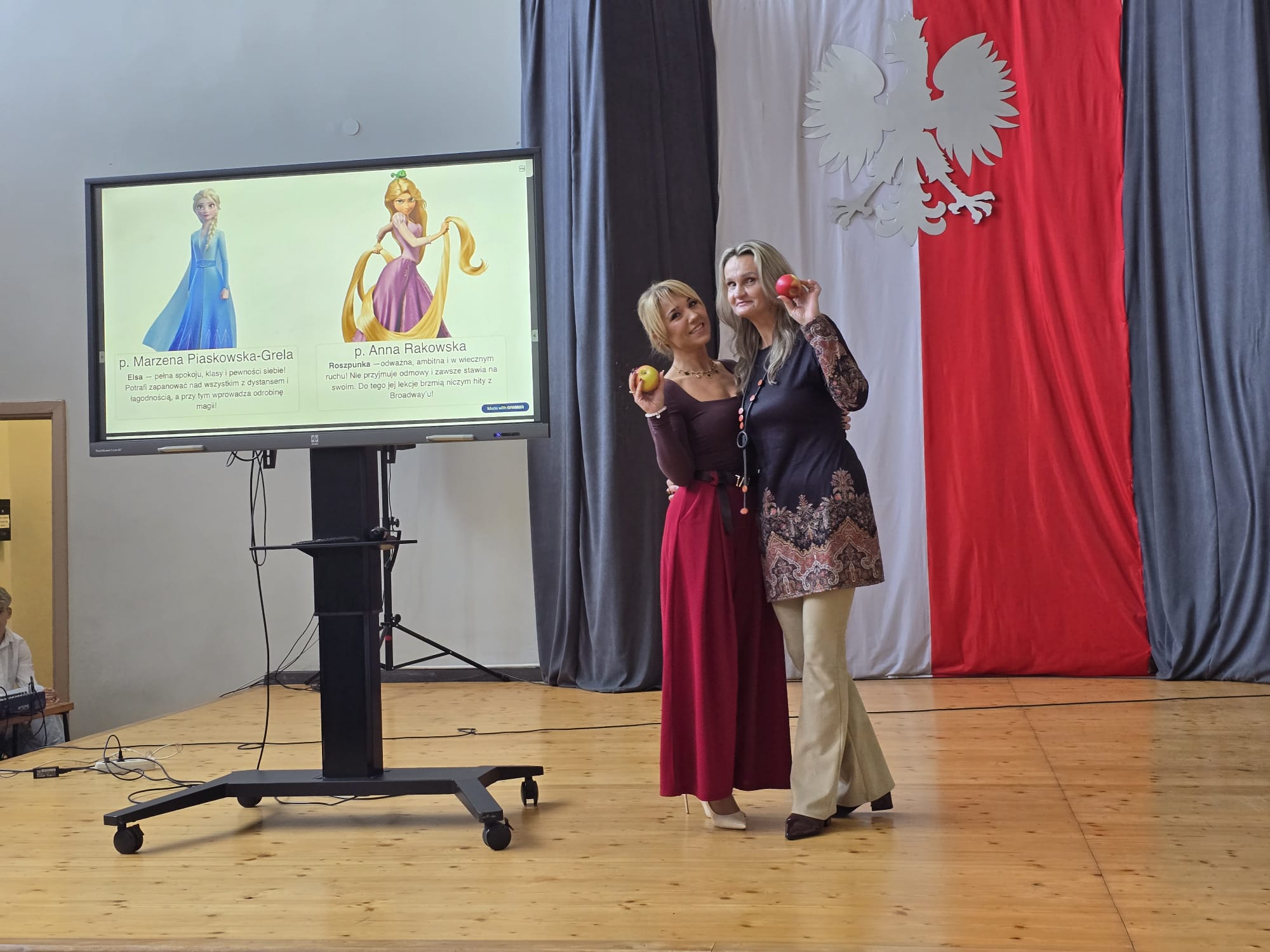 Po chwili refleksji przyszedł czas na sporą dawkę śmiechu! Uczniowie zaprezentowali humorystyczne przedstawienie, w którym nasi nauczyciele wcielili się w… bohaterów znanych bajek!