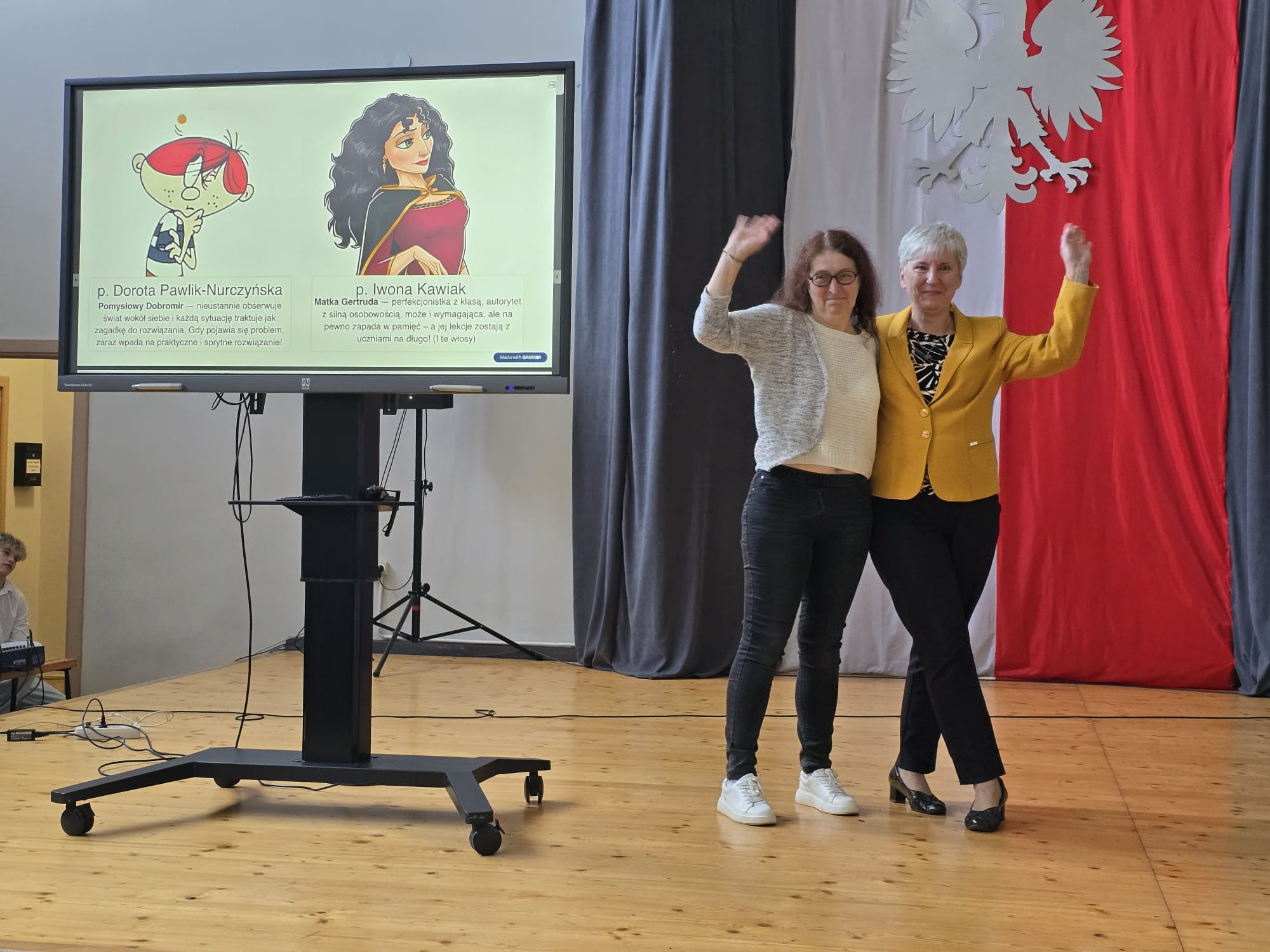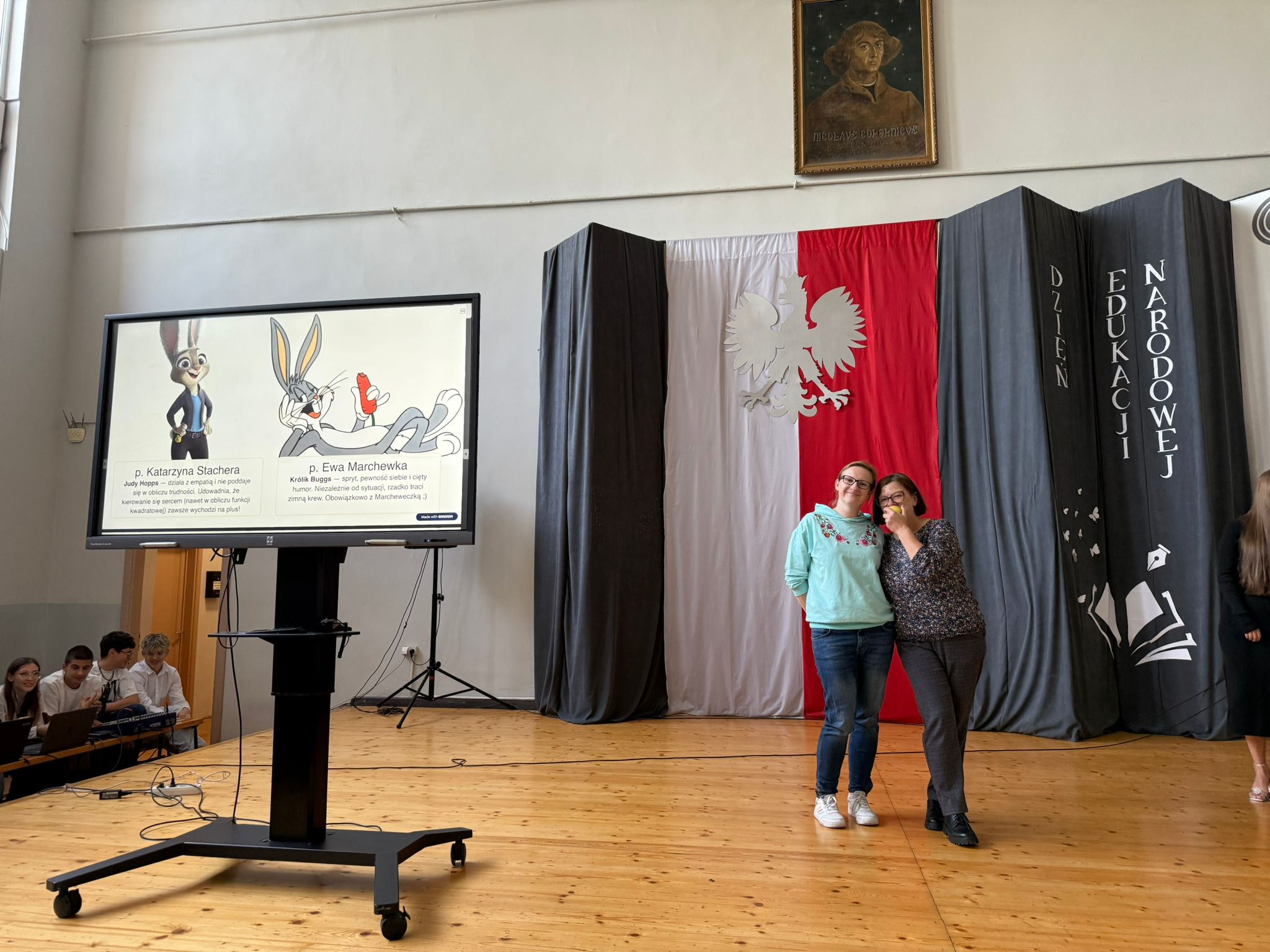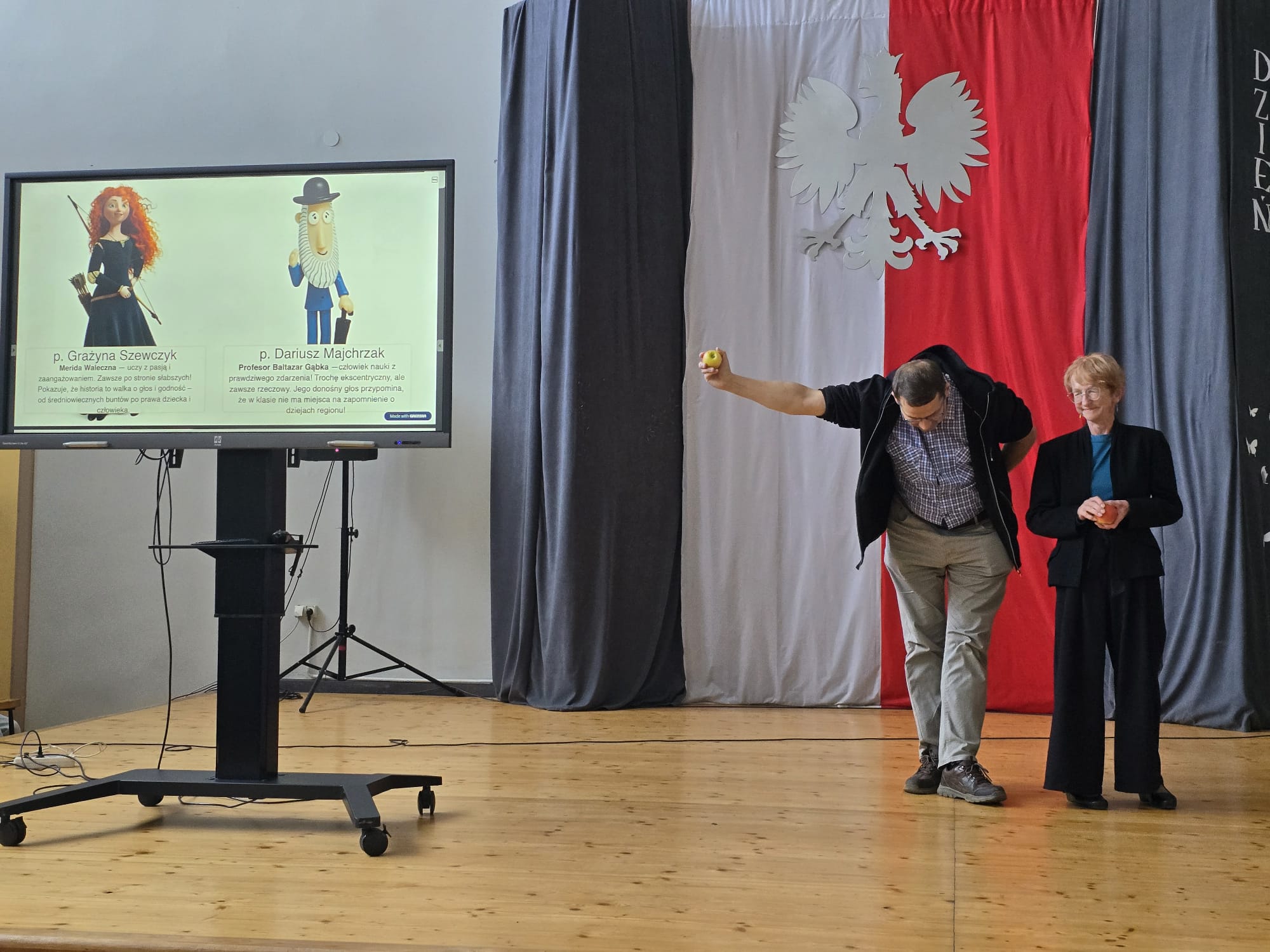 Po chwili refleksji przyszedł czas na sporą dawkę śmiechu! Uczniowie zaprezentowali humorystyczne przedstawienie, w którym nasi nauczyciele wcielili się w… bohaterów znanych bajek!