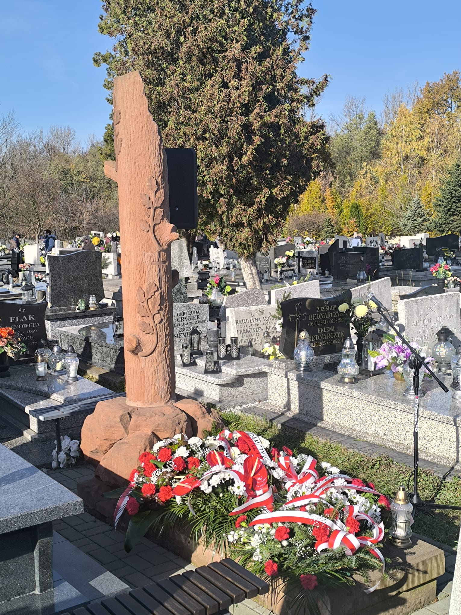 złożenia kwiatów na grobie osób należących do Organizacji Bojowej PPS, rozstrzelanych przez Rosjan w roku 1906. Był to efekt brutalnych represji wobec uczestników rewolucji 1905 roku, która 120 lat temu ogarnęła całe Zagłębie Dąbrowskie i podczas której wielu mieszkańców oraz mieszkanek regionu walczyło zarówno o poprawę warunków pracy jak i o niepodległą Polskę.
