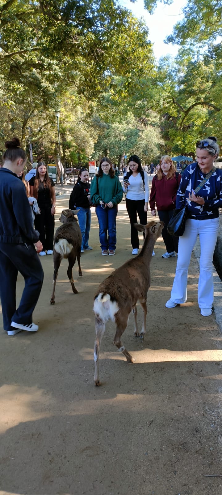 Najwięcej radości przyniosło jednak spotkanie z… jeleniami! Te urocze zwierzęta, uznawane w Japonii za święte, swobodnie przechadzają się po mieście i chętnie podchodzą do turystów, by poczęstować się smakołykami.