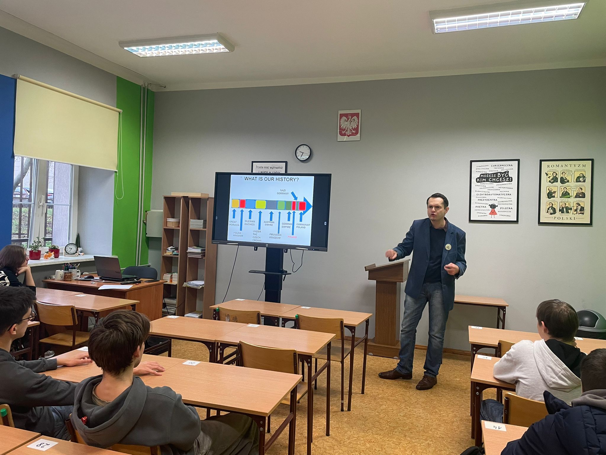 Marcin Melon przeprowadził z uczniami „Kopernika” świetne zajęcia z edukacji regionalnej poświęcone najważniejszym aspektom dotyczącym naszego sąsiada-Górnego Śląska. Młodzież SP37 wzięła udział w warsztatach poświęconych Zagłębiu Dąbrowskiemu, a następnie wraz z naszymi uczniami uczestniczyła w arcyciekawej i wyrównanej debacie oksfordzkiej w języku angielskim. Teza debaty brzmiała: Globalization is killing national heritage.