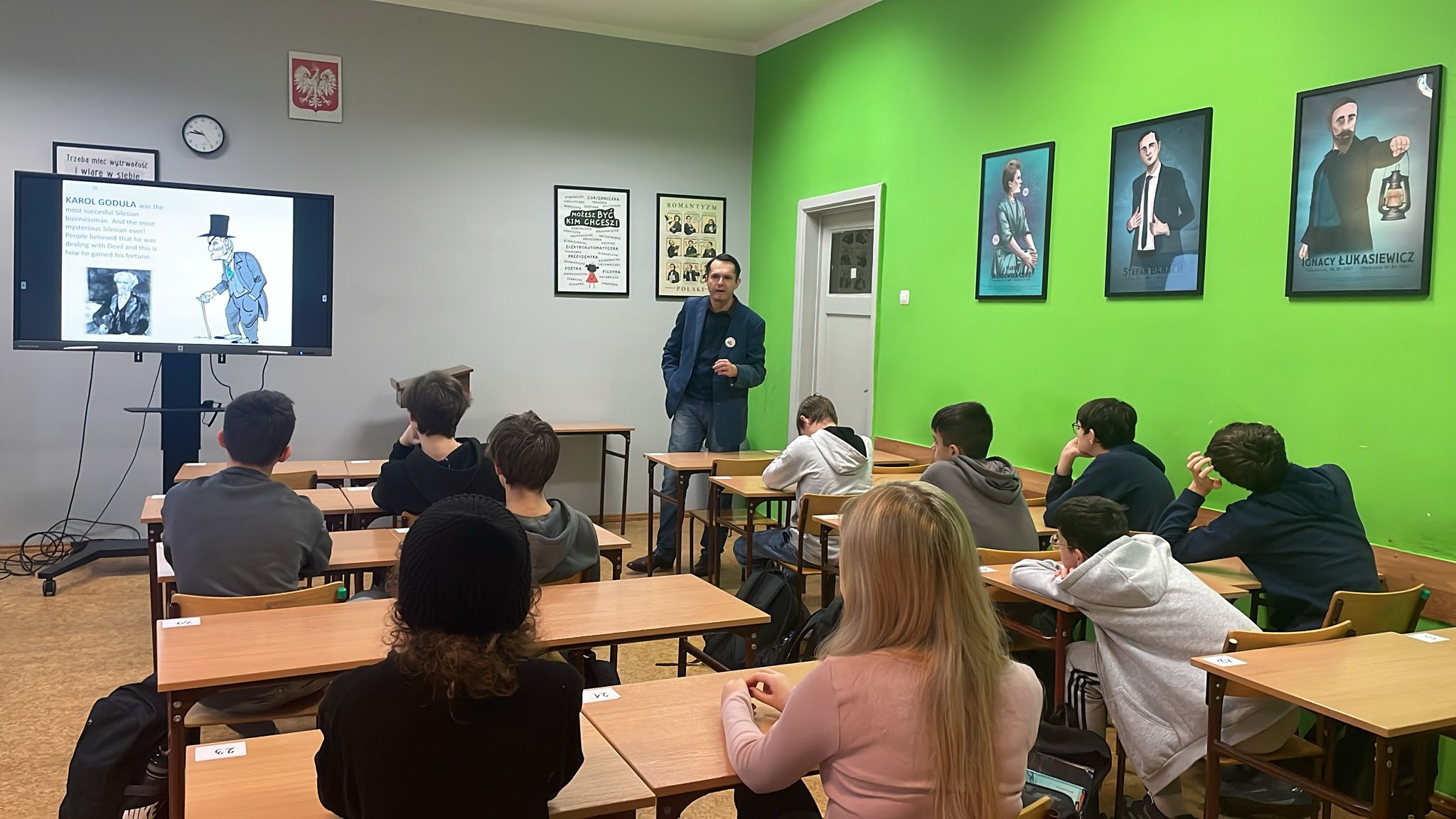 W dniu 20 listopada miało miejsce niezwykle ciekawe wydarzenie w naszej szkole. „Dzień obu brzegów Brynicy”. W jego ramach przybyli do nas wspaniali goście. Były to uczennice i uczniowie ze Szkoły Podstawowej nr 37 z oddziałami dwujęzycznymi im. Kornela Makuszyńskiego w Tychach wraz z dwojgiem fantastycznych nauczycieli: Aleksandrą Zając i Marcinem Melonem. Tyska szkoła podstawowa jest obecnie jedną z najlepszych w województwie śląskim, podobnie jak nasze liceum.