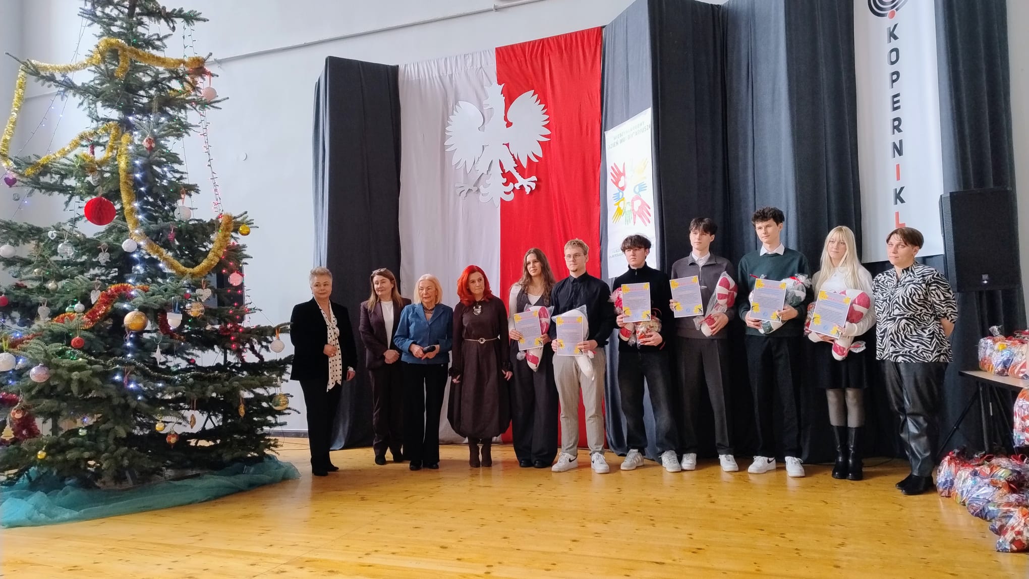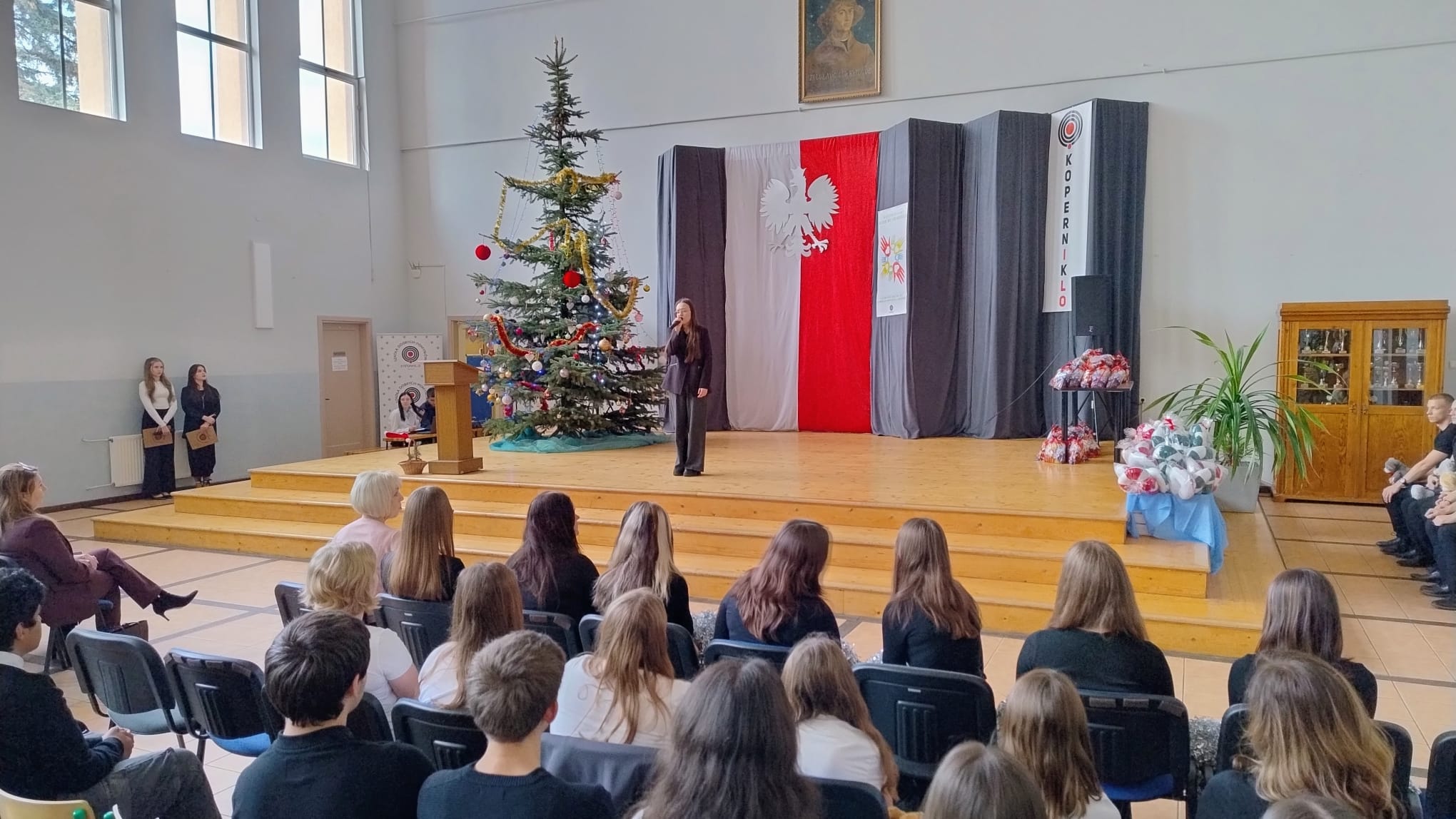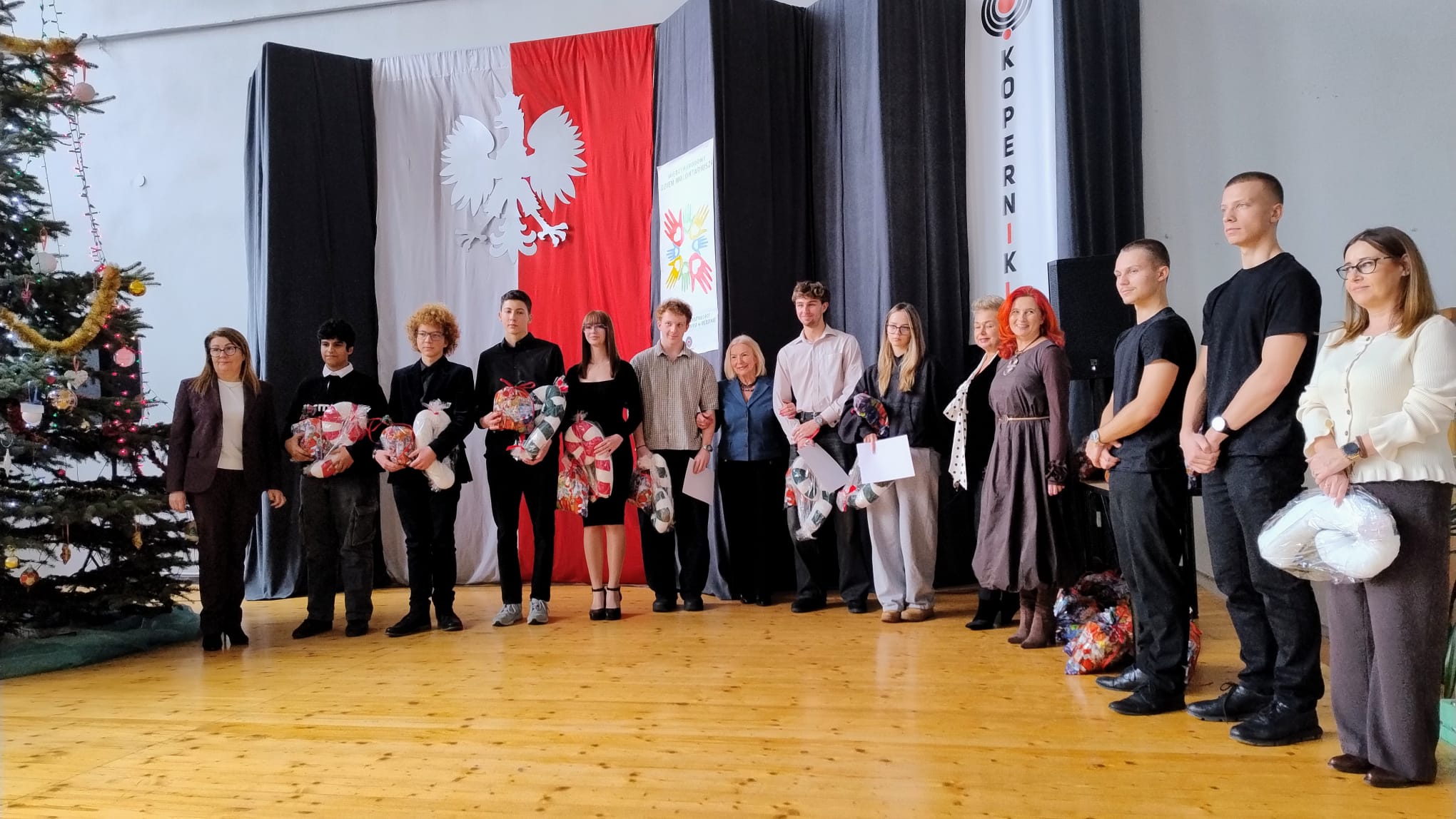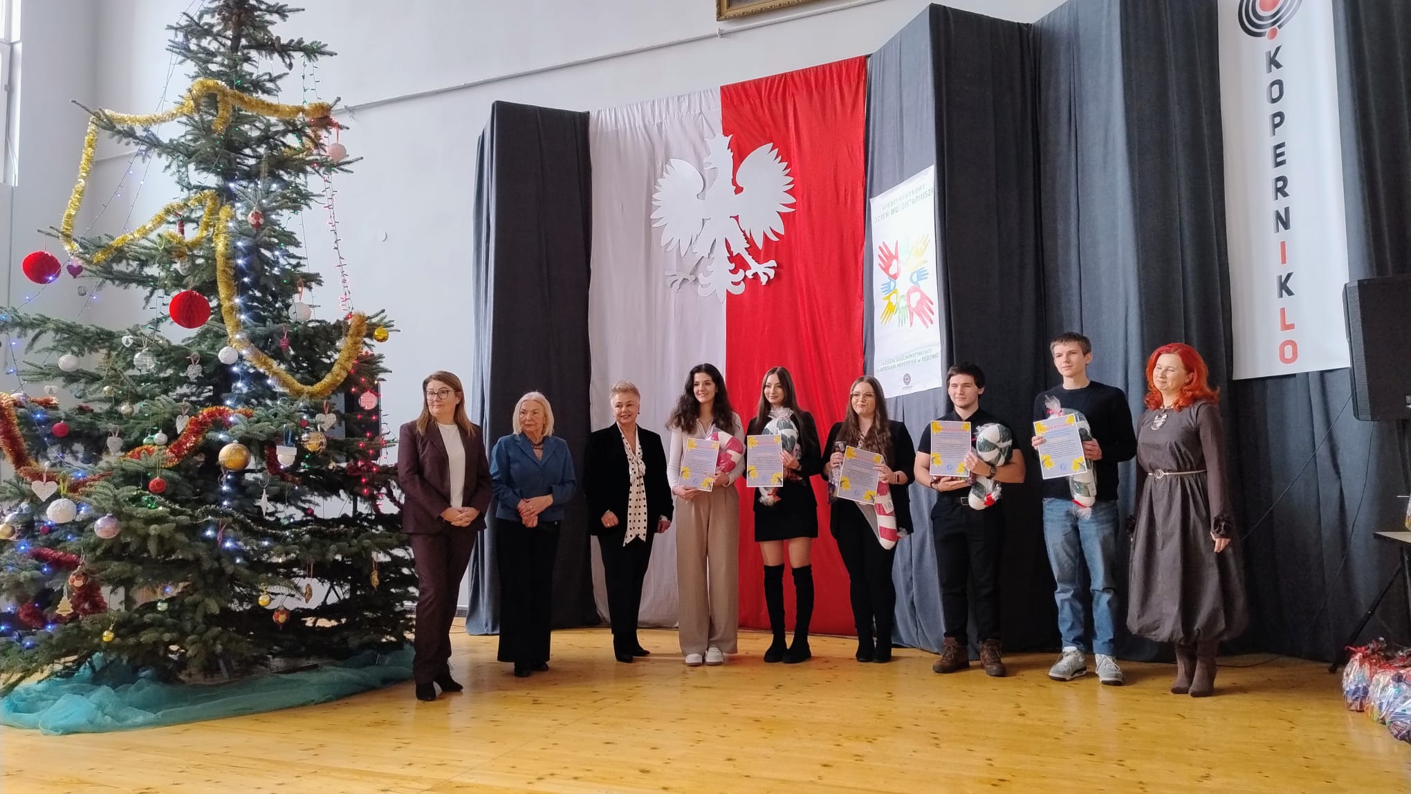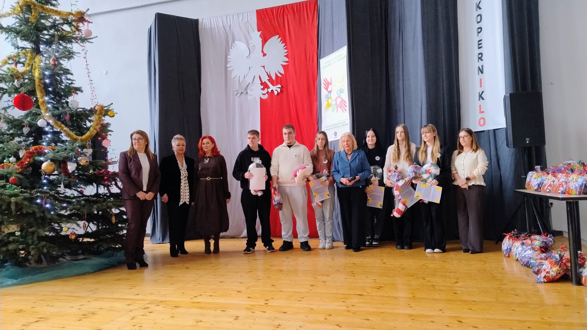 Wolontariusze zostali uhonorowani upominkami od Pana Starosty i Fundacji ” Pro Salute”. Zgromadzeni w auli Kopernika mogli wysłuchać pastorałki wykonanej przez uczennice z Zespołu Szkolno-Przedszkolnego w Sączowie. Wspaniałe na scenie zaprezentował się zespół taneczny „Fantazja” ze Szkoły Podstawowej nr 6 oraz zespół taneczny ze Szkoły Podstawowej nr 11 z Będzina. Jak zwykle perfekcyjne zaprezentowały się nasze „słowiki” Dominika Wilczyńska i Emilia Kuś. Nie zabrakło też kopernikowskiego boys bandu.