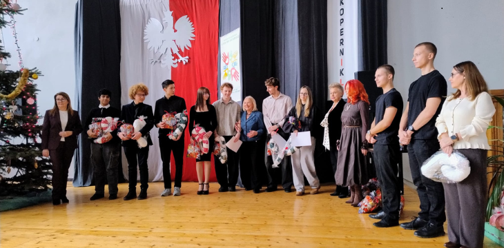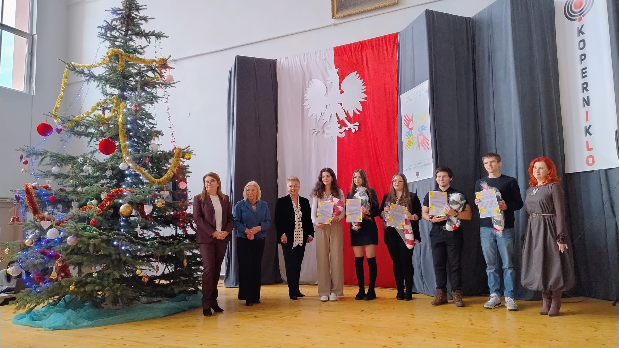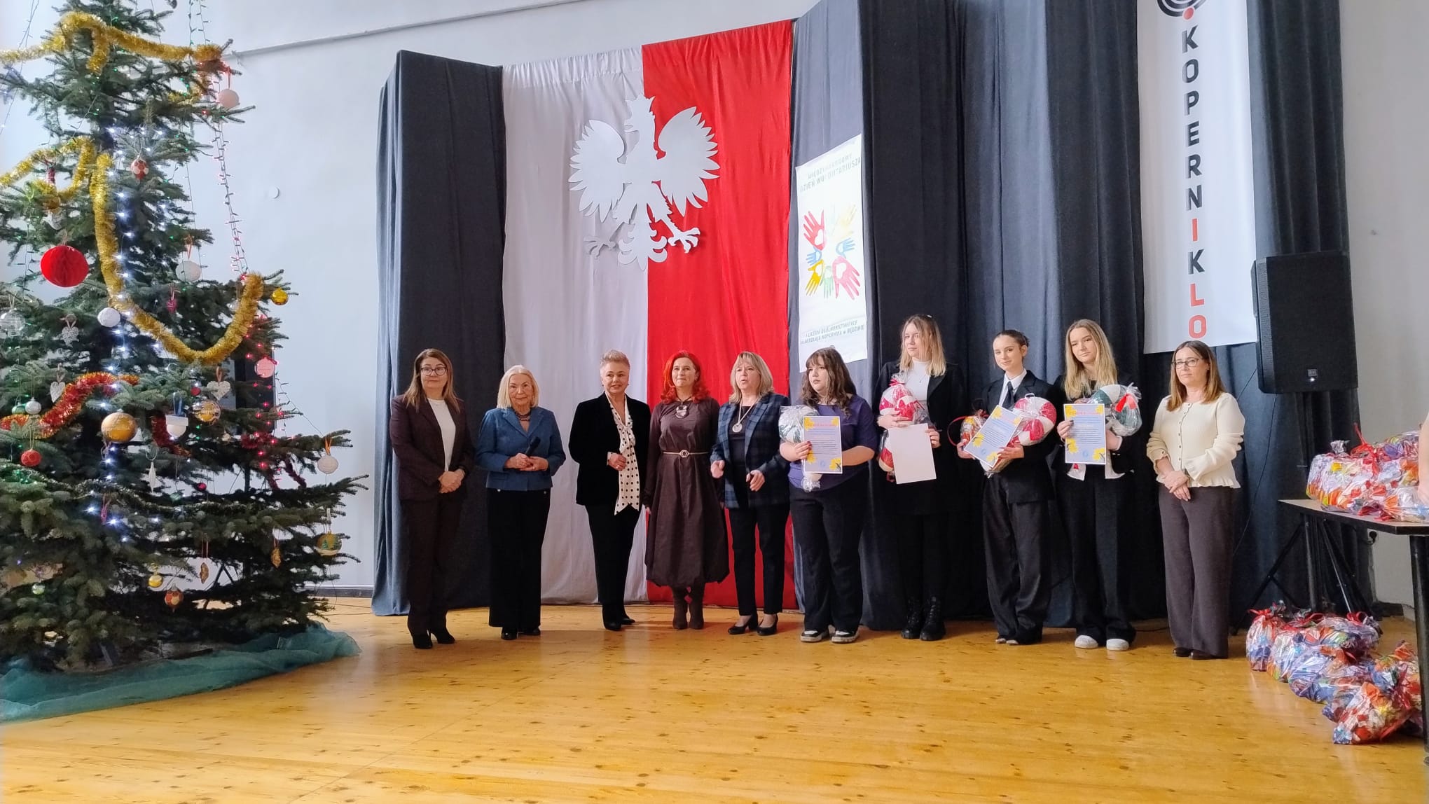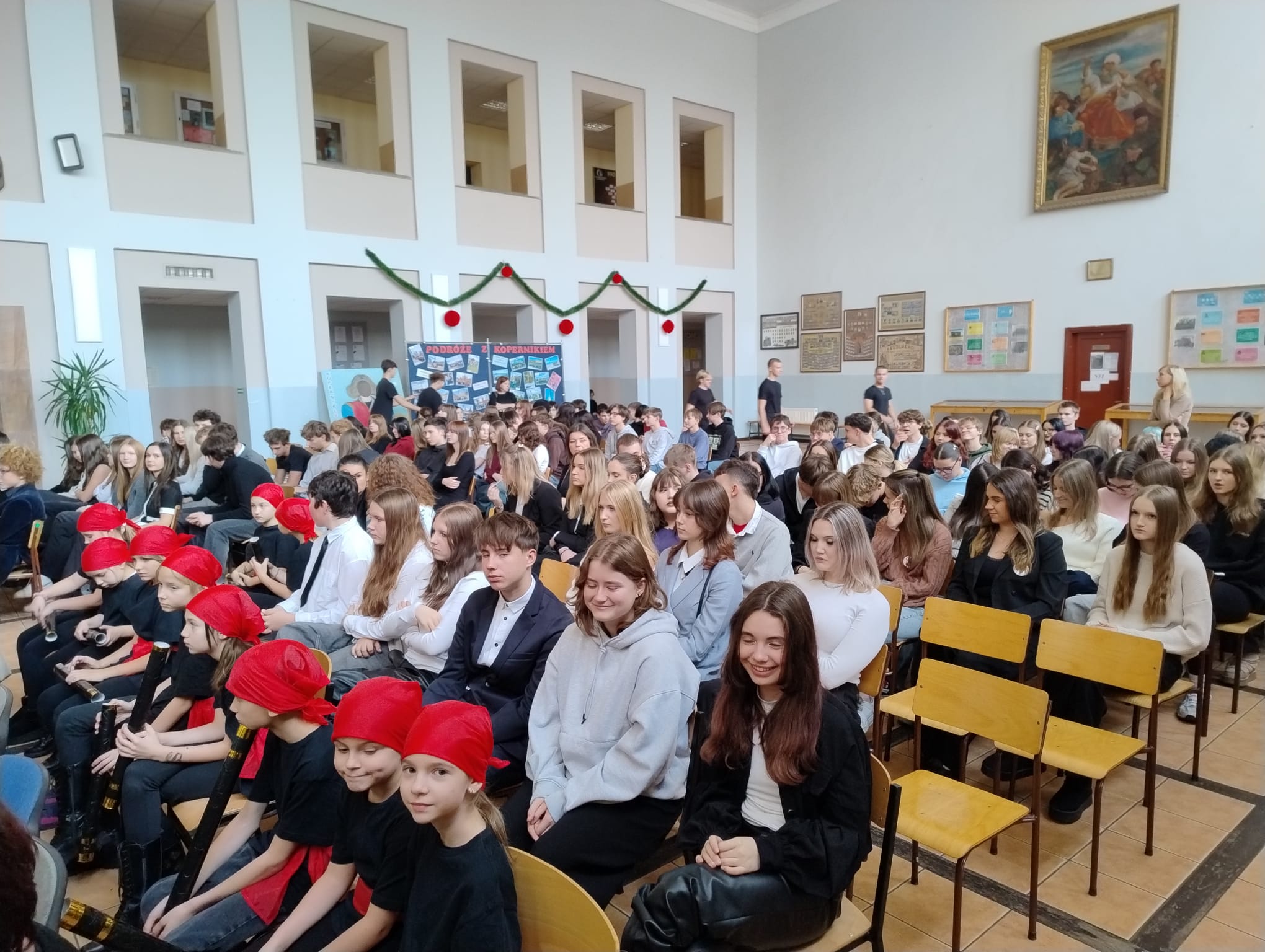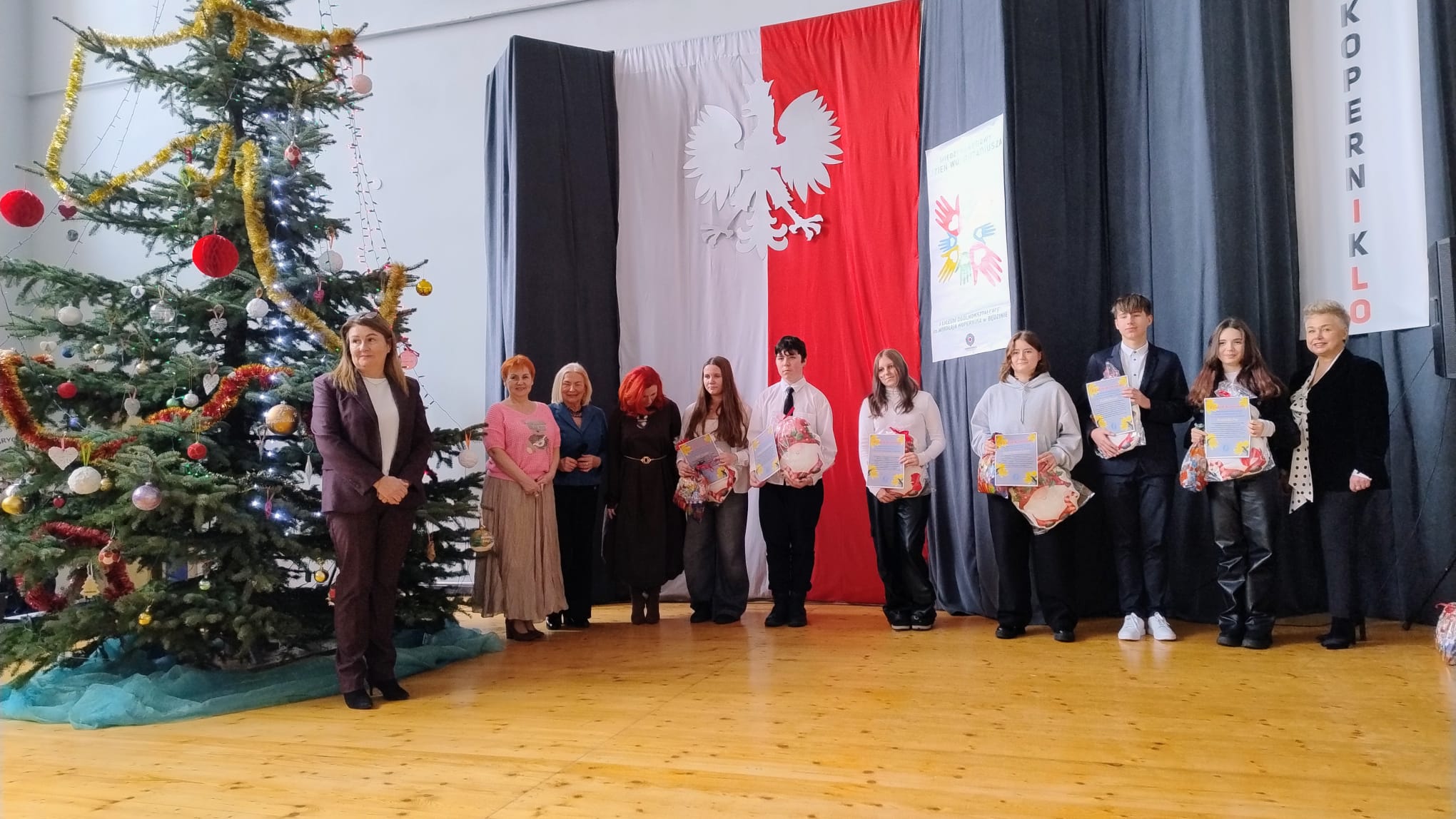 Wolontariusze zostali uhonorowani upominkami od Pana Starosty i Fundacji ” Pro Salute”. Zgromadzeni w auli Kopernika mogli wysłuchać pastorałki wykonanej przez uczennice z Zespołu Szkolno-Przedszkolnego w Sączowie. Wspaniałe na scenie zaprezentował się zespół taneczny „Fantazja” ze Szkoły Podstawowej nr 6 oraz zespół taneczny ze Szkoły Podstawowej nr 11 z Będzina. Jak zwykle perfekcyjne zaprezentowały się nasze „słowiki” Dominika Wilczyńska i Emilia Kuś. Nie zabrakło też kopernikowskiego boys bandu.