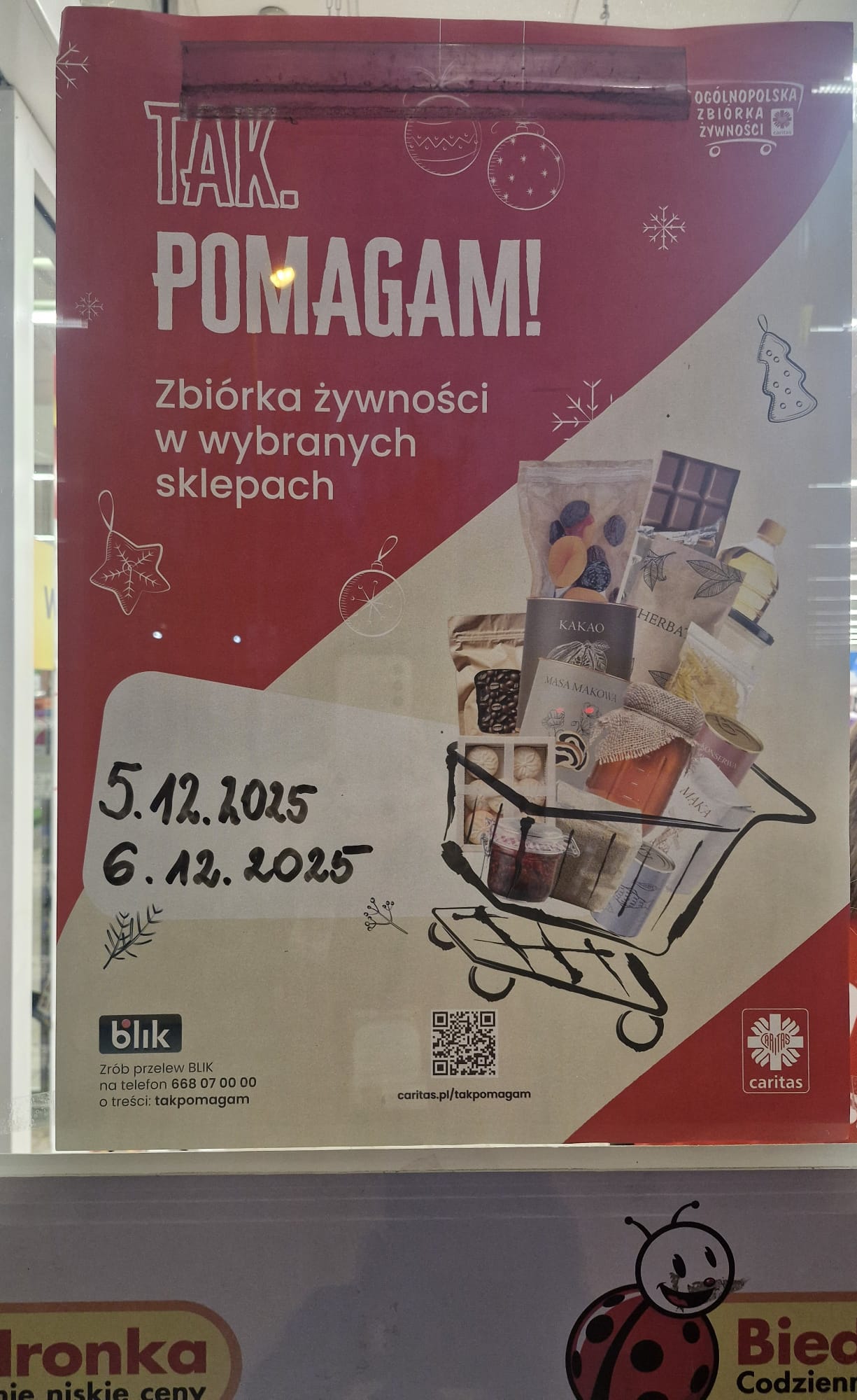W miniony weekend wolontariusze I Liceum Ogólnokształcącego im. Mikołaja Kopernika w Będzinie wzięli udział w ogólnopolskiej zbiórce żywności Caritas Tak, Pomagam. Naszych uczniów nie mogło zabraknąć w Biedronce, gdzie z zaangażowaniem zachęcali klientów do wsparcia osób potrzebujących.