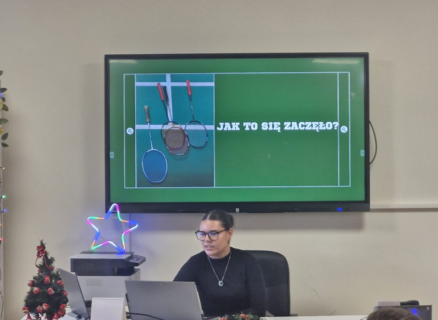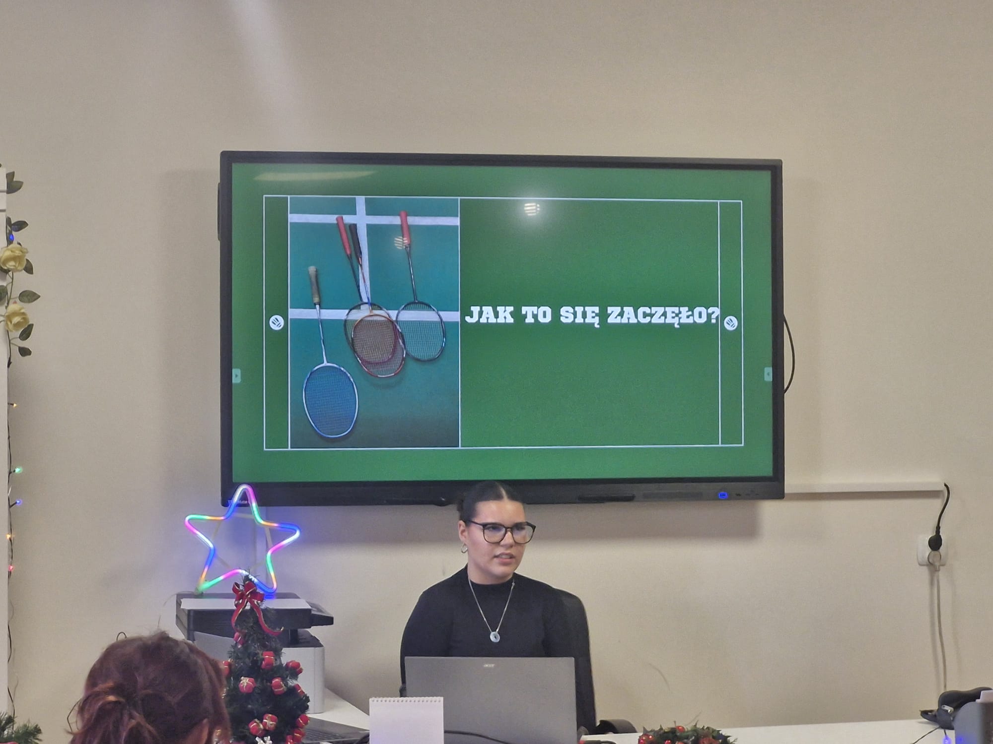 z Kamilą Rawinis z klasy 3D, młodą, ale niezwykle utalentowaną zawodniczką badmintona, która z pasją i zaangażowaniem podbija korty. Spotkanie było inspirującą rozmową o jej drodze w sporcie, podczas którego przedstawiła nam prezentację dotyczącą gry