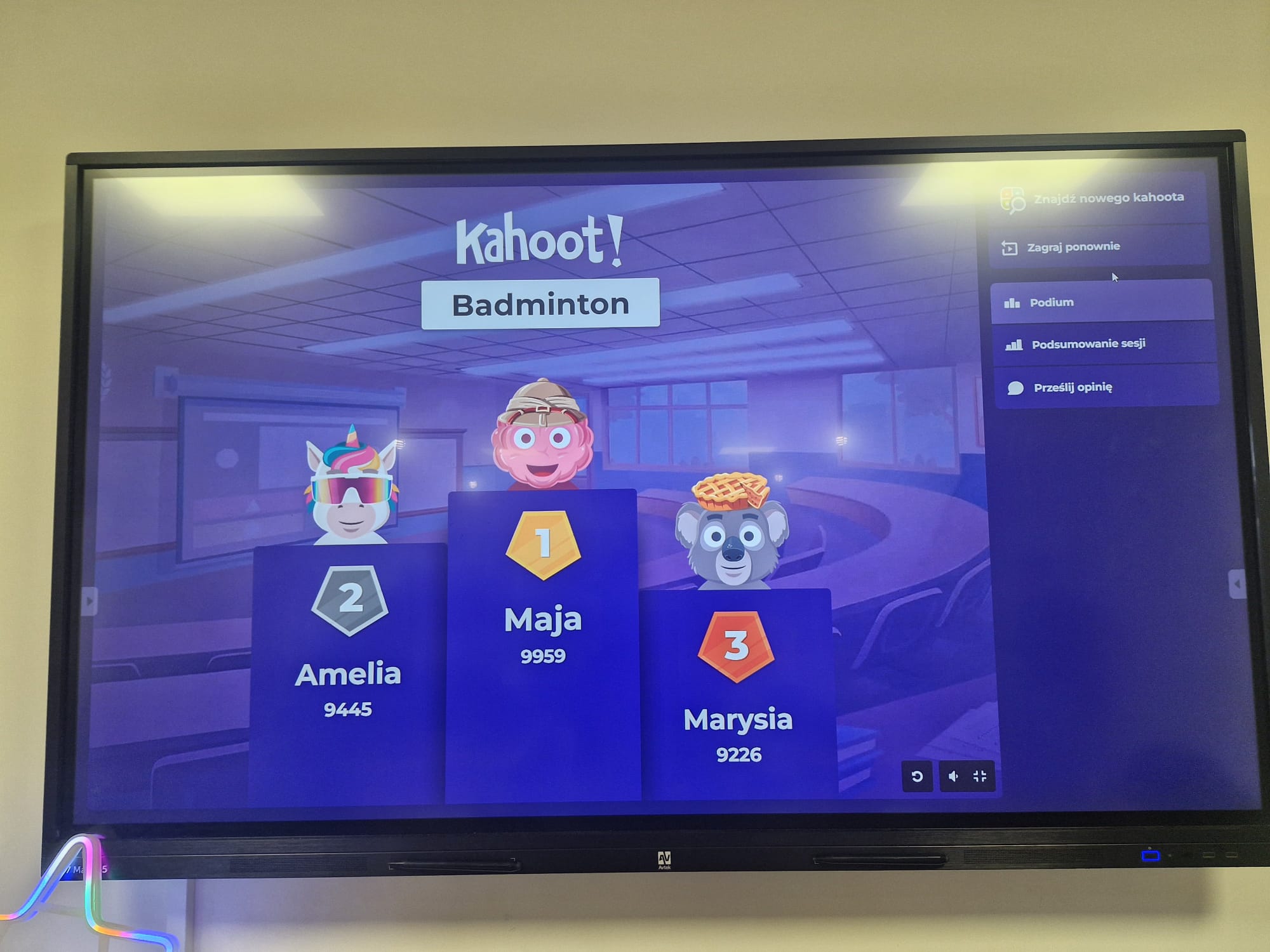 o badmintonie, który Kamila Rawinis przygotowała na platformie „Kahoot”. Wszyscy świetnie się bawili.