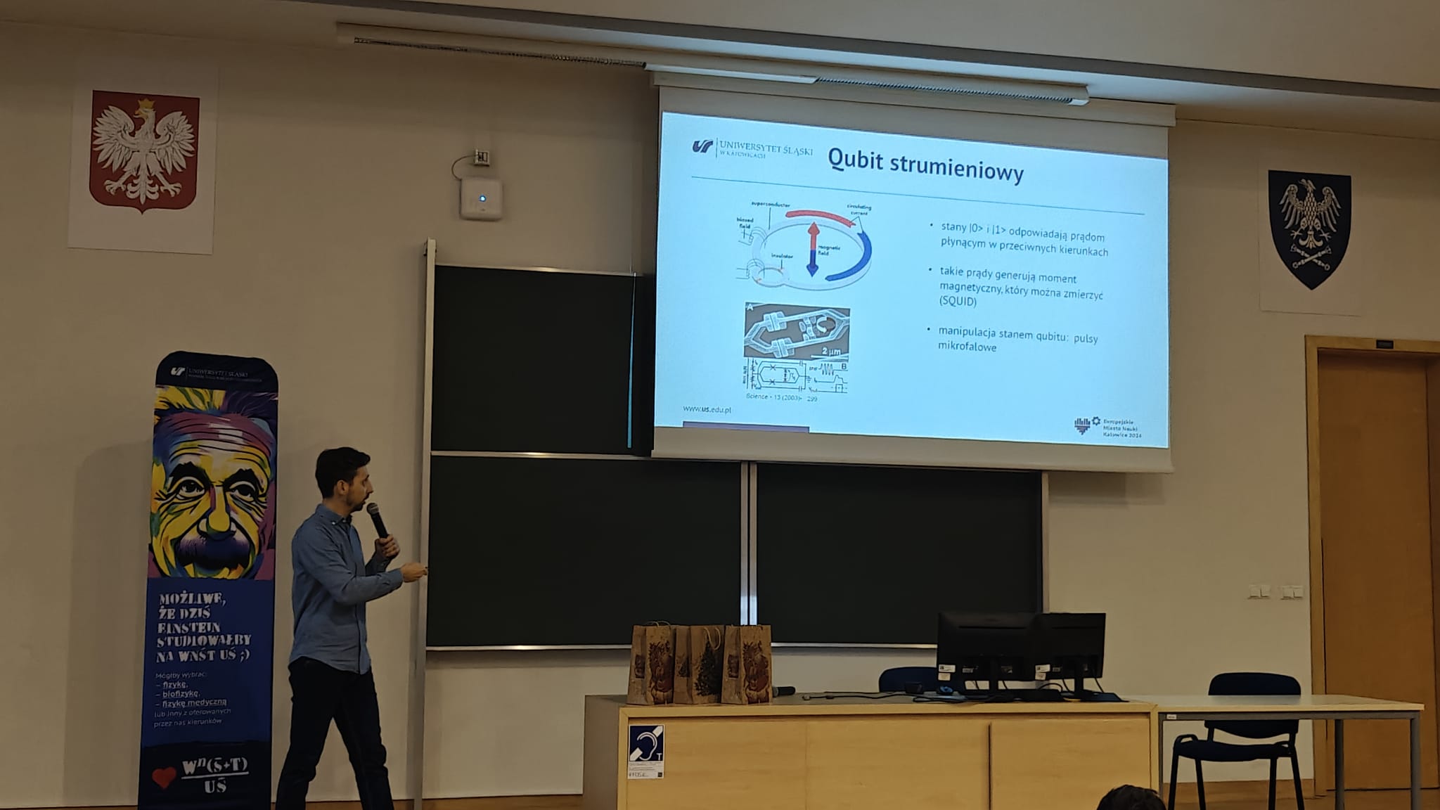 Dr Piotr Migdał przedstawił słuchaczom możliwość poznawania mechaniki kwantowej w formie symulacji naukowej, wirtualnego laboratorium, czy też gry.