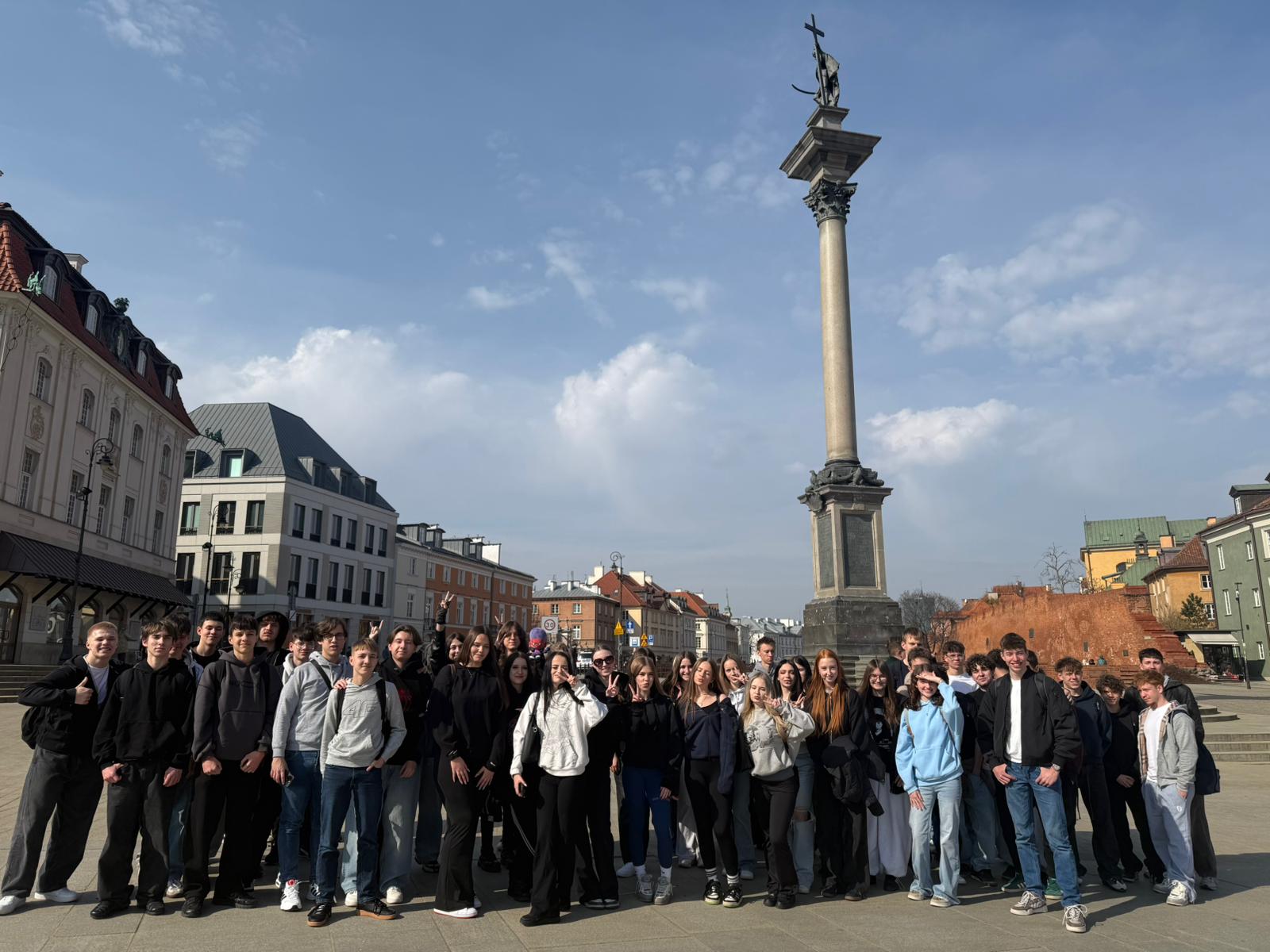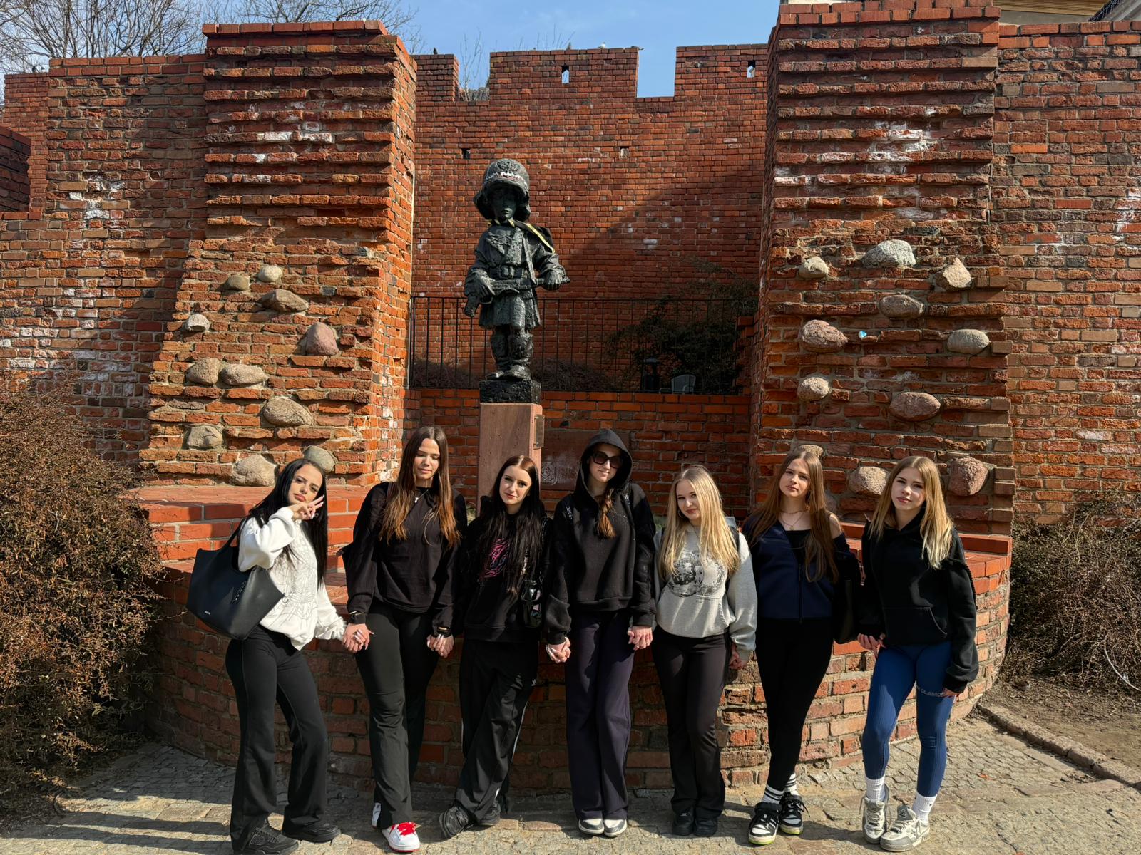 Następnie grupa udała się na Plac Zamkowy, gdzie rozpoczęła spacer po najważniejszych miejscach Warszawy. W trakcie wycieczki uczniowie zobaczyli Kolumnę Zygmunta, Rynek Starego Miasta, Barbakan oraz Pomnik Małego Powstańca – symbol pamięci o najmłodszych bohaterach Powstania Warszawskiego.